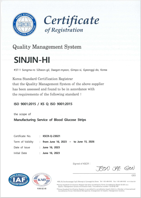 신진하이 ISO 9001 인증 최고관리자 2024-02-02 최고관리자 0 1715 2024.02.02 10:17 2023년 6월 16일 신진하이가 ISO 9001 인증을 취득하였습니다.
